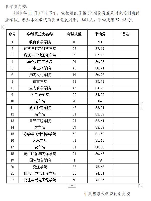 第82期党校党员发展对象培训结业考试情况通报